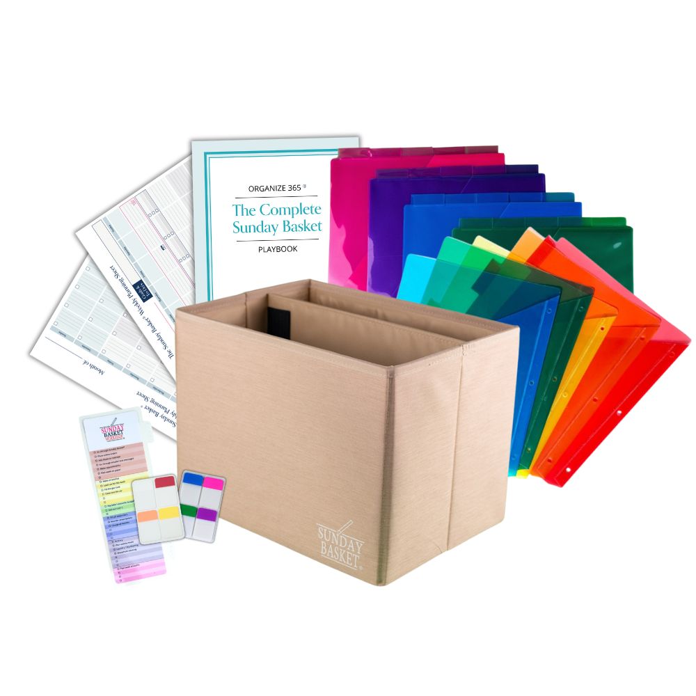 I have tried to make my own Sunday Basket as I have listened to Lisa's podcasts for at least a couple years but was having trouble fully understanding the process. For Christmas this year, I used money my parents gave me and bought the Complete Sunday Basket System. I am still working on consistently going through it each week but it is helping (especially with that panicky "I'm forgetting something" feeling) and I know where things are. The Sunday Basket Club meetings each week that you can join with your purchase are so helpful to hear others questions and also to ask your own. Still have a lot of old papers to sort through but so excited with the direction I am headed. Thank you Lisa and the Organize 365 Team!
