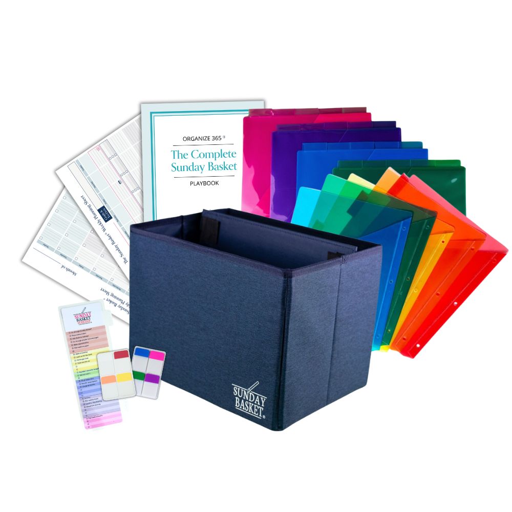 I purchased and received my complete Sunday Basket in March. I follow several organizers online, each with different types of guidance (meals, family scheduling, finances, etc.). I had liked Lisa's book "How ADHD Affects Home Organization". I started listening to her podcasts, and her energy and professionalism drew me in more! I had been aware of her Sunday Basket system, but I decided I was now really ready to use it in my life. Things I especially love about it: the ease-of-use features, and (no lie!) all the colors of the slash pockets and the box/"basket" itself! The slash pockets are really great - you can slide things into them while they are stored in the basket, you can take individual pockets with you as needed (ie. on errands), and you label them as needed for your personal use (with suggested guidance). The basket is open-top, and you and your family just drop things into the wide, open space within the basket to fully address later (on Sundays, or as regularly as possible). The shipping cost of the complete system is included :) as is the Sunday Basket Club (the Facebook group with live weekly support). I've received excellent responses from the Organize 365 Team each time I've had a question. If you want to get a grasp on paper overwhelm, the Sunday Basket system is a good one, with lots of support!