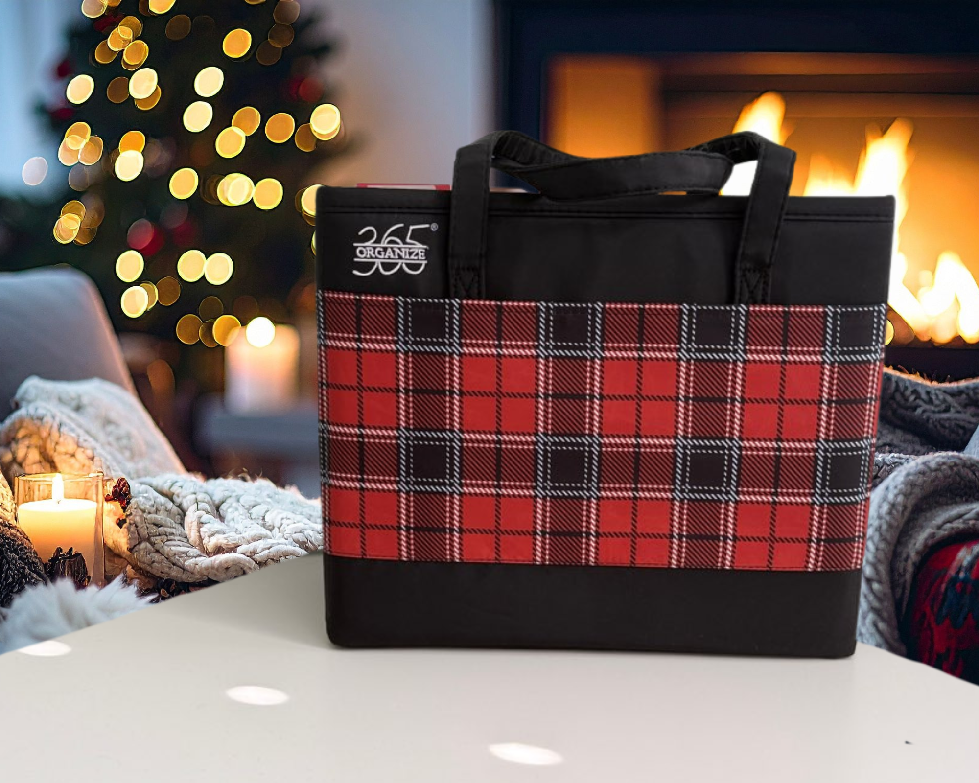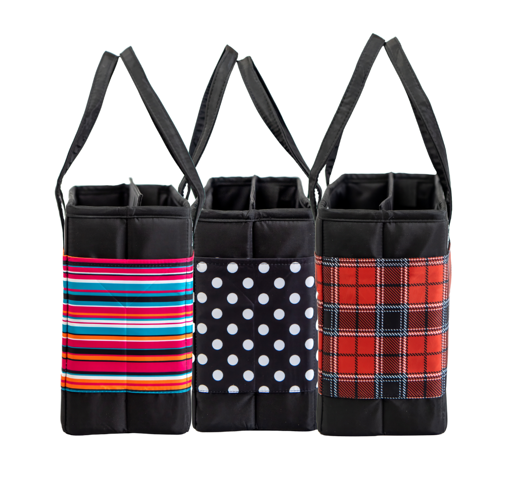 I am surprised at how much I use and really like my portable Sunday Basket. I got the black one with tiny white dots and it’s so functional, practical and now comes with me everywhere. It’s likely responsible for the demotion of my purse. Sorry purse. Anyway, I got another one, the plaid one, and I get a lot of use out of this one as well. Love them